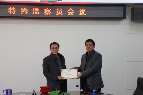 12月24日下午,特约监察员会议在一号办公楼二楼会议室召开,会议由纪委书记肖小芹主持,纪委、监察室全体职工及全体特约监察员参加会议。校长廖端芳为第三批特约监察员颁发了聘书,充分肯定并感谢了特约监察员为学校平稳发展做出的贡献,希望大家在学校推进依法治校的过程中发挥应有的监督作用。